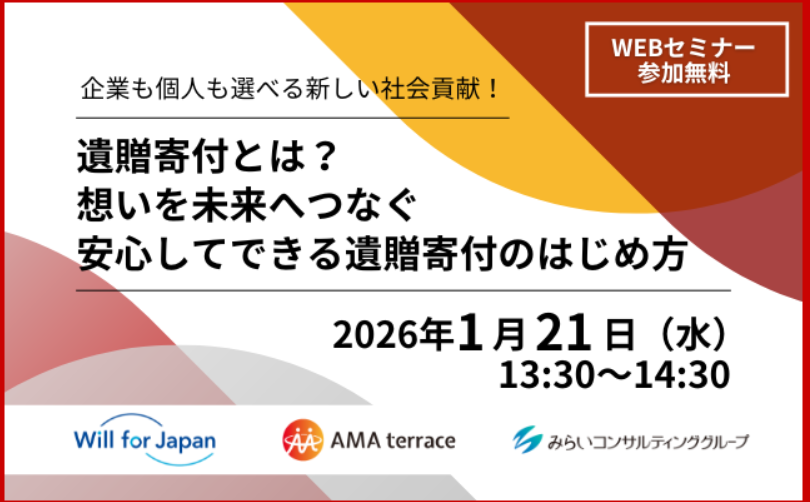 2026/1/21(水)開催! 遺贈寄付とは?想いを未来へつなぐ ― 安心してできる遺贈寄……